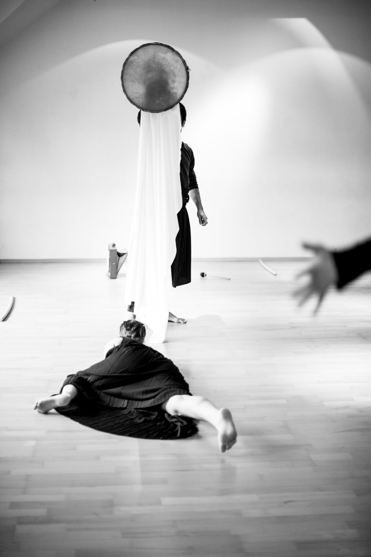 Tworząc ten spektakl, poszukujemy współczesnego rytuału — obrzędu utkanego z ciała, głosu i tekstu; struktury, która mogłaby na nowo przywrócić sens pojęciom: wspólnota, odpowiedzialność, granica. Odprawiamy go, by zrozumieć, z jaką łatwością człowiek wchodzi w ciemność, gdy obiecuje mu się „więcej”, ale także po to, by spróbować odczarować i przekształcić rzeczywistość: wytrącić ją z mechanicznego biegu, naruszyć hipnozę, w której przemoc wydaje się koniecznością.
