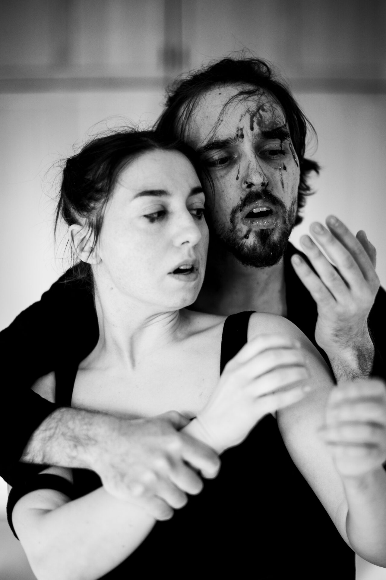 W warstwie realizacyjnej spektakl odwołuje się do tradycji Teatr Ubogi i pracy laboratoryjnej. Redukując scenografię oraz środki pozasceniczne do absolutnego minimum, twórcy koncentrują się na aktorze i tekście: na rytmie słowa, intensywności głosu i fizycznym napięciu obecności. To ciało staje się przestrzenią konfliktu — polem, na którym ujawniają się przemoc, pragnienie i lęk.