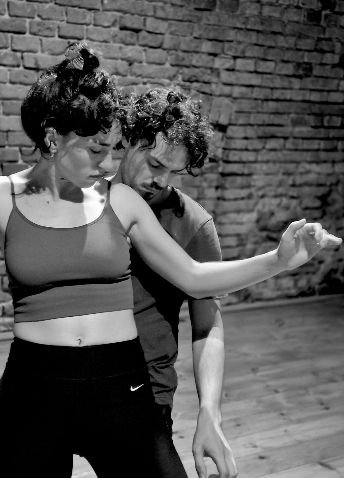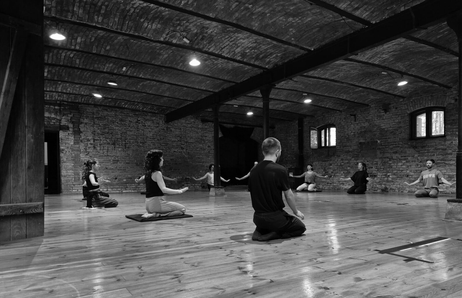 - bieg na kontakt – intensywna grupowa praktyka, budząca czujność, wzajemne słuchanie oraz pozwalająca pracować nad dynamiczną relacją z otaczającą performera przestrzenią;